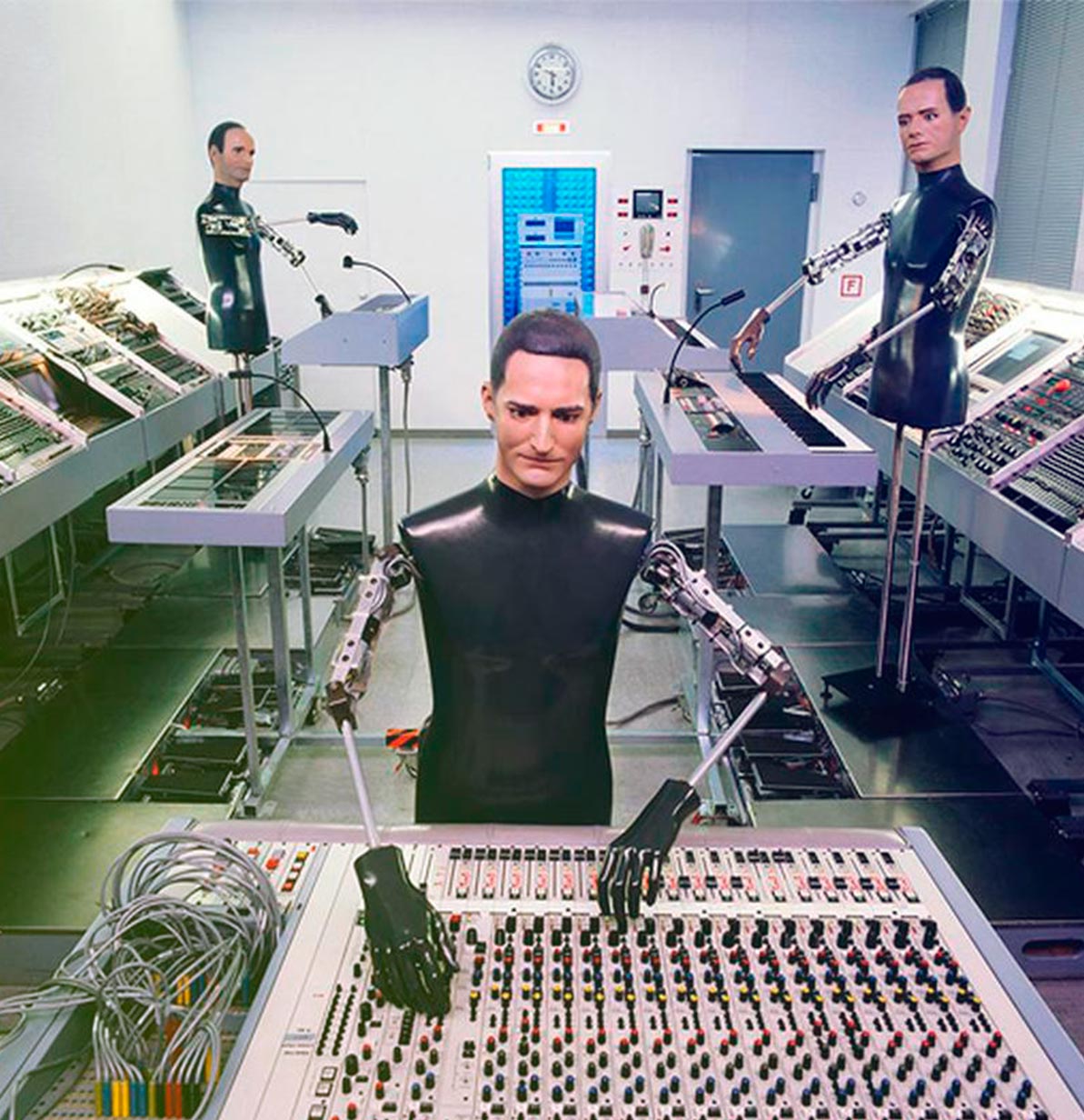El uso de sintetizadores, computadoras analógicas, vocoders, samplers y procesadores de señal intensifican sus mensajes, sencillos a la par que ambiguos y que celebran el progreso industrial y tecnológico.[/vc_column_text][/vc_column][/vc_row][vc_row][vc_column][vc_single_image image=»1379″ img_size=»full»][/vc_column][/vc_row][vc_row][vc_column][vc_column_text]Sus álbumes comenzaron desde la “música eléctrica” más abstracta –Kraftwerk I y Kraftwerk II (1970 y 1972 respectivamente) y Ralf und Florian (1973)– hasta sus obras maestras conceptuales como Autobahn (1974), Radio-Aktivität (1975), Trans Europa Express (1977), Die Mensch-Maschine (1978), Computerwelt (1981) y Electric Café (1986).